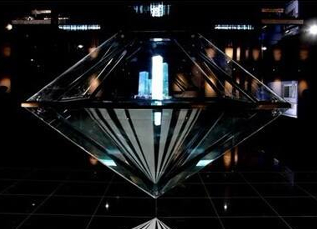 全息影像是实现真实的三维图像的记录和再现,观察者可以通过前后、左右和上下移动来观察图像的不同形象如同有个真实的物体在那里一样。